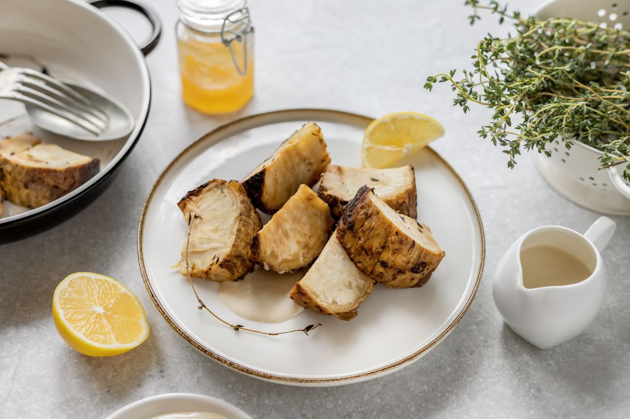 - Kastrol: Na čtyři porce kastrolu se doporučuje použít 200–300 g kořenového celeru. Dodá lehkou oříškovou nótu – pokud ale nechcete výrazné aroma, omezte se na 100–150 g na celý pokrm.